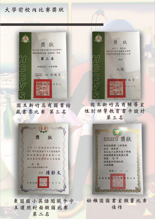 2001年出生在新竹,從小到大過著平凡的生活,有畫畫跟吸收奇怪知識跟蒐集奇怪東西(例如化石、貝殼、郵票等)的習慣,小學跟高中在校內有得過繪圖設計的獎項,現在就讀海洋大學文創設計系。