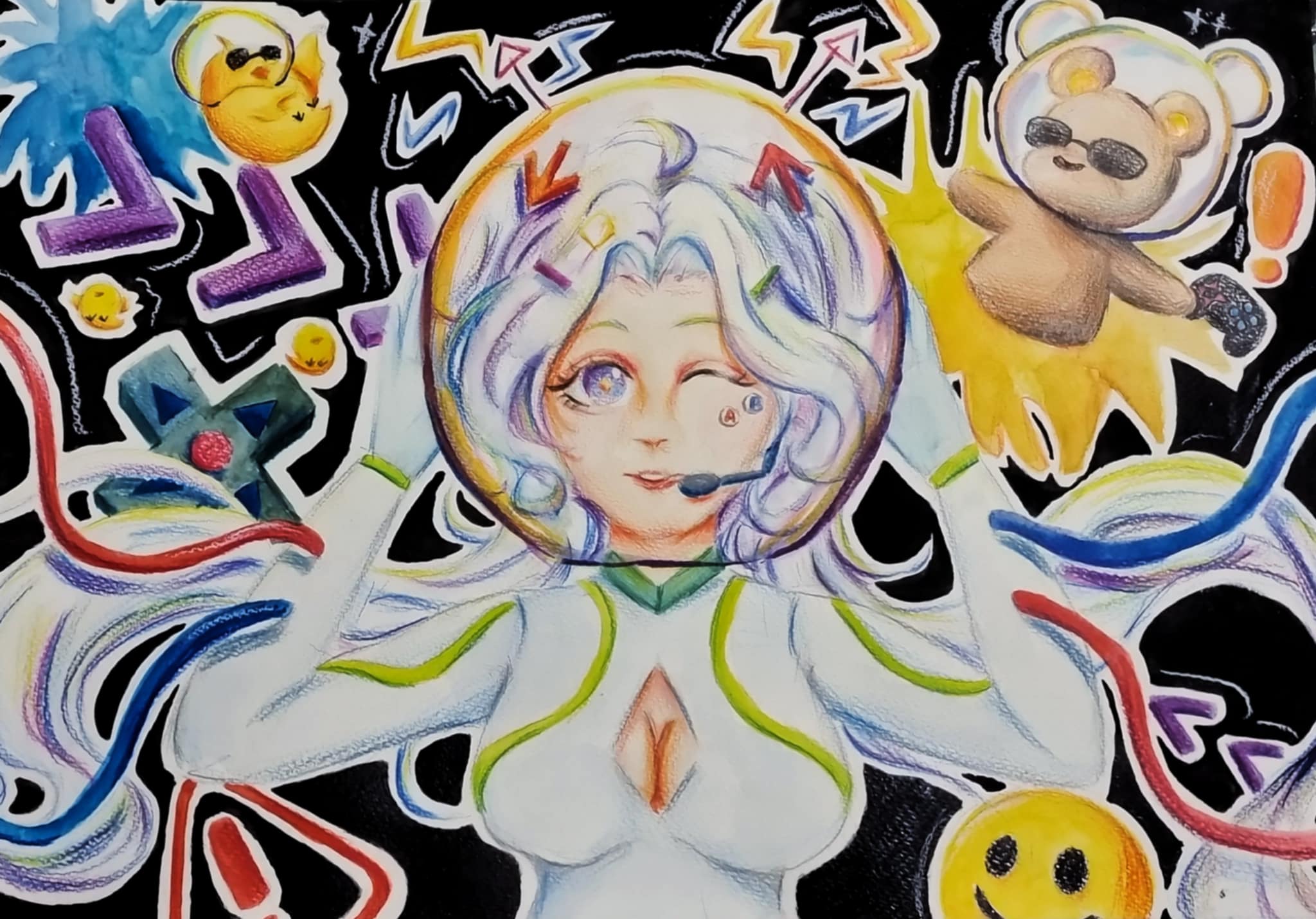 在我心中的元宇宙會有著各式各樣的元素,不論是超大超閃的遊戲標誌還是次元突破的傳送門,或者是一位未來科技感的少女,在我的元宇宙,沒有不可能,任何事物都有可能。