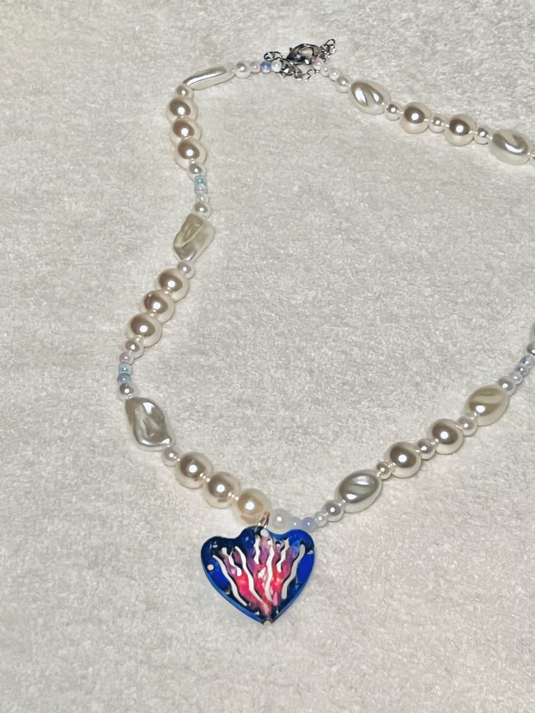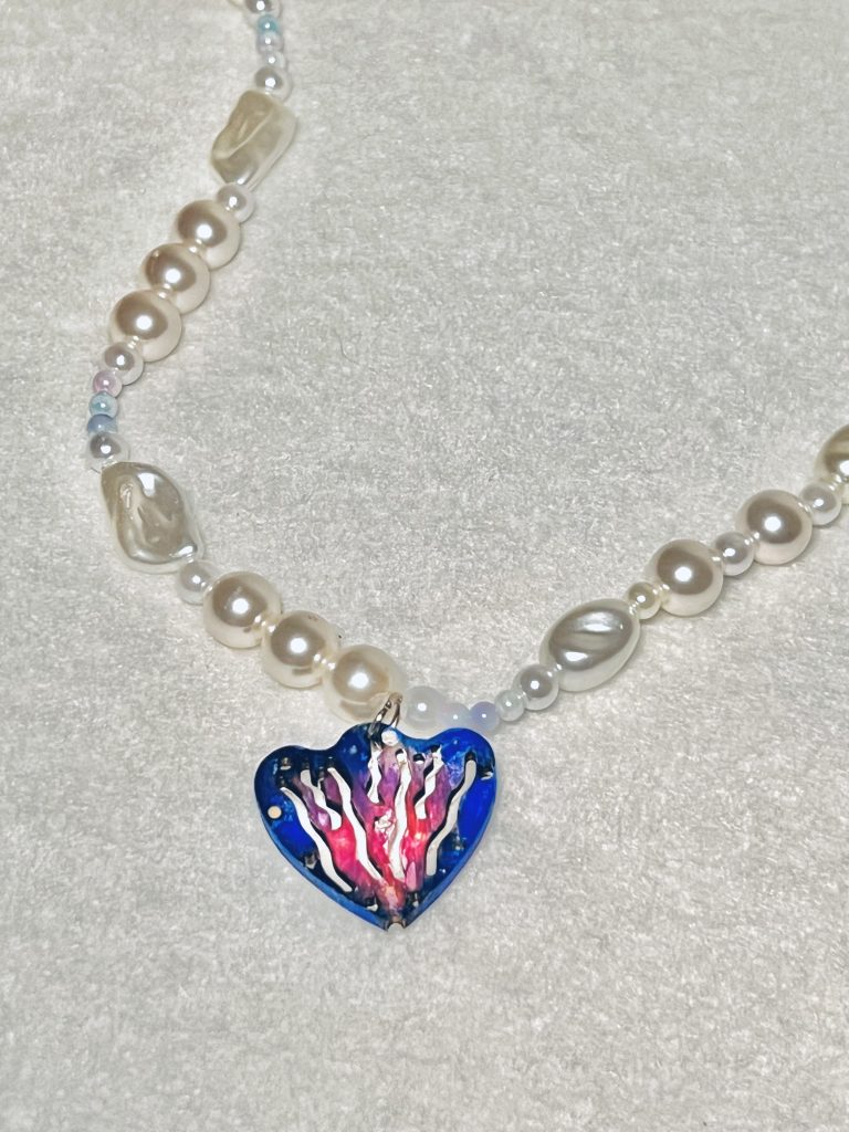 想 製 作 蛤 蜊 項 鍊 , 主 要 想 宣 導食 魚 文 化 永 續 資 源 的 部 分 , 透過 製 作 型 態 , 來 提 醒 世 人 , 不要 亂 撿 拾 海 邊 不 管 是 蛤 類 還 是貝 類 , 因 為 影 響 到 的 生 物 是 我們 無 法 想 像 的 , 透 過 項 鍊 配 戴, 時 刻 提 醒 世 人 。