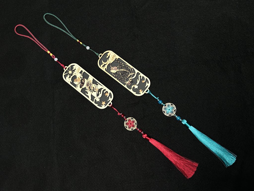 設計用途:主要作為吊飾使用,也適用於當作書籤,兩個吊飾合併時,則可當作風鈴使用。